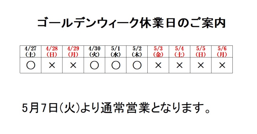 GW休業のお知らせ