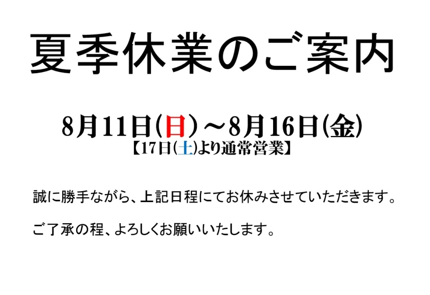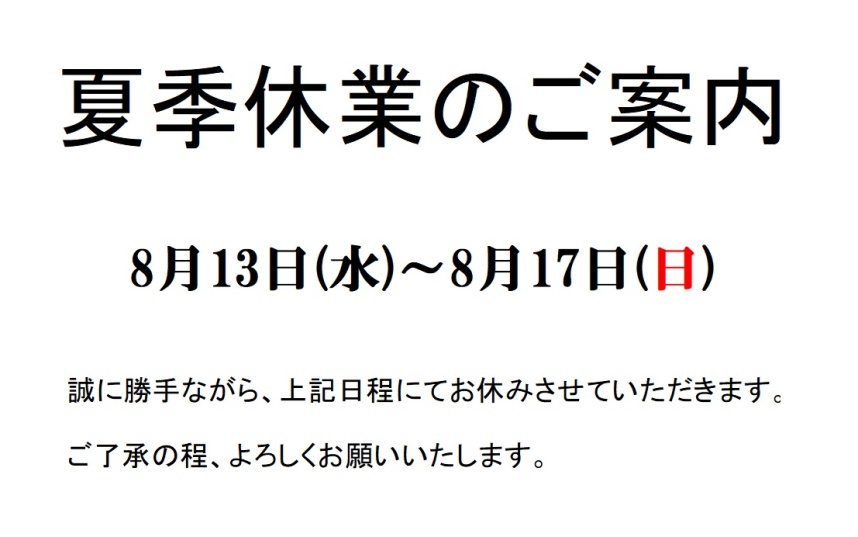 夏季休業日のお知らせ