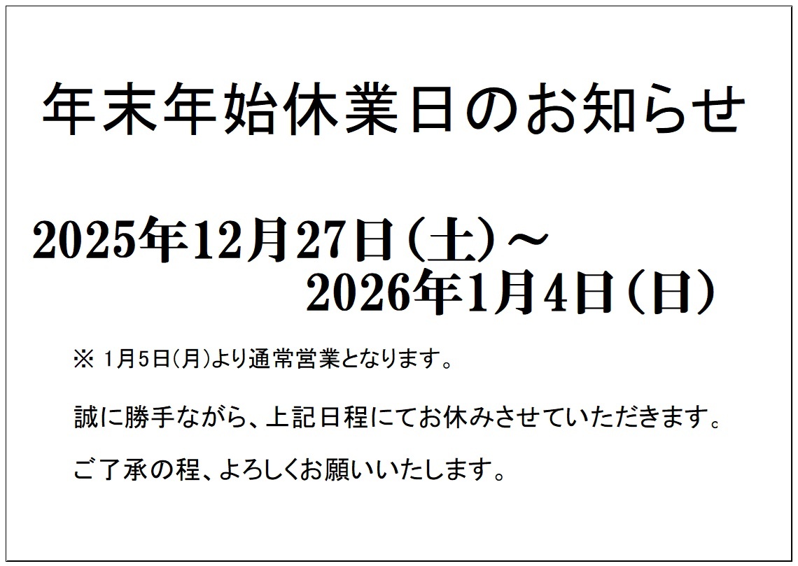 2025年12月19日(金) お知らせ NEW