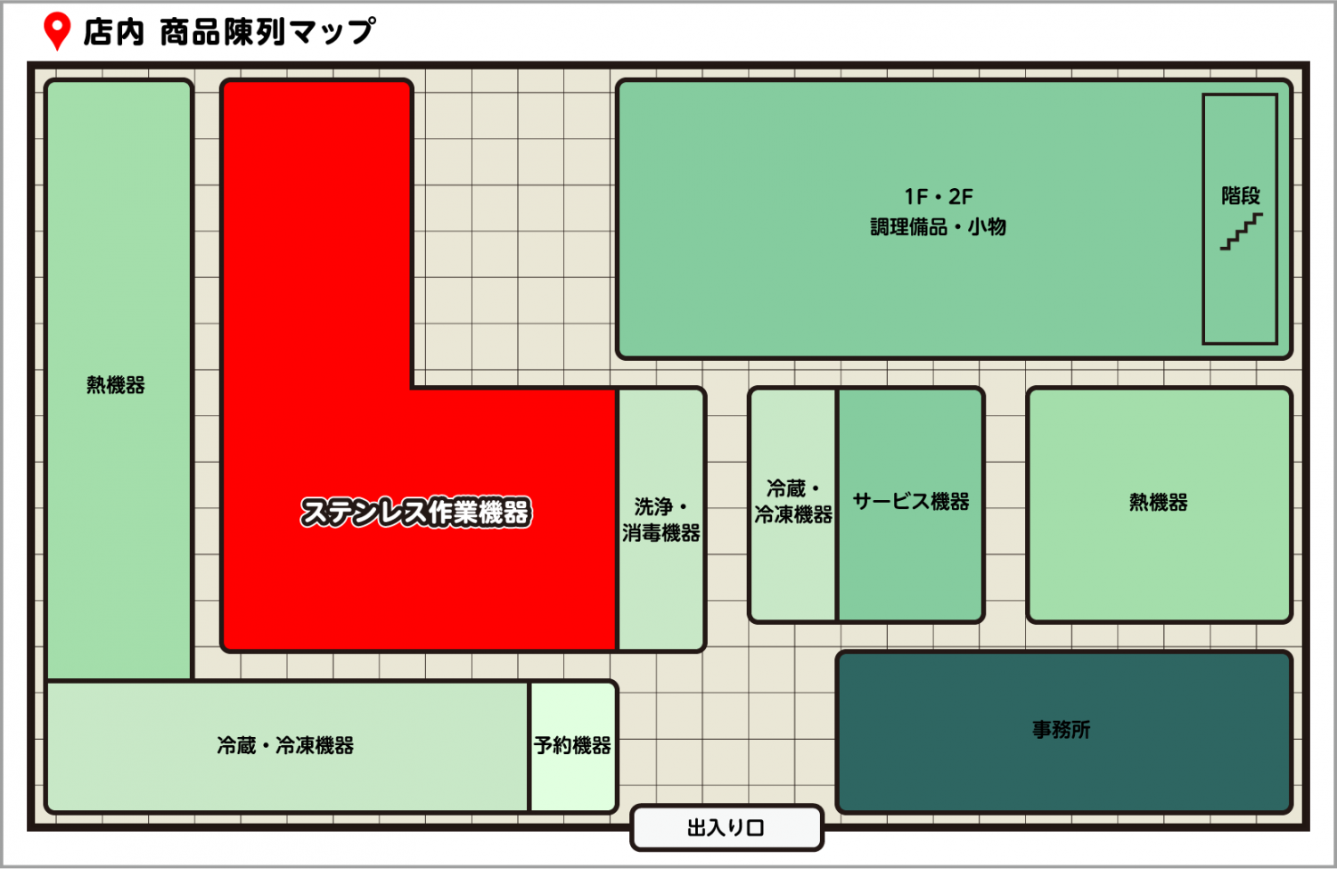 シンク・作業台・ガス台・調理台・戸棚・吊戸棚・パイプ棚・シェルフラック・サービスカートetc