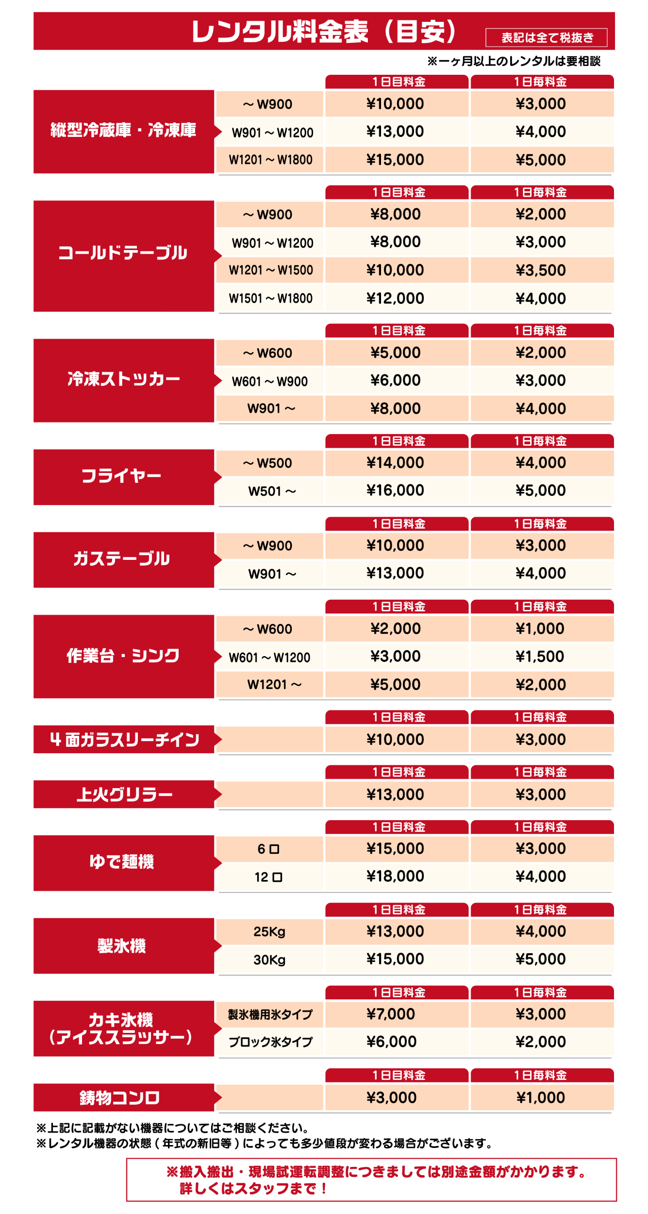 厨房機器レンタル